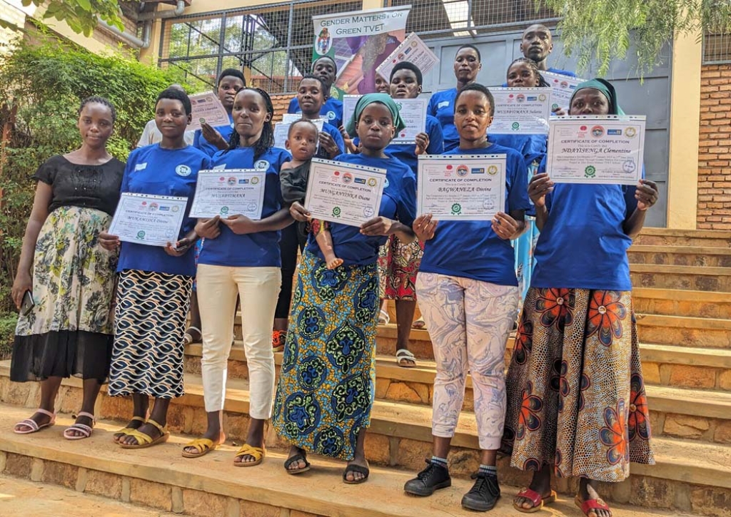 Kigali, Rwanda - June 2025 - Joy, pride and a renewed sense of belonging filled the air at the Don Bosco Muhazi vocational training school, where young mothers and vulnerable youth gathered to receive their certificates from the six-month short course in agriculture supported by the Gender Matters for Green TVET transformative project. The graduation ceremony, held at the school, brought together students and teaching staff, all united by a common belief in the power of second chances and empowerment based on skills. The event represented a historic milestone for many young mothers and disadvantaged youth graduates, particularly those who overcame enormous personal and social challenges to pursue a formation in sustainable agriculture. In his keynote address, Ahobantegeye Theodore, Director of Studies at Don Bosco Muhazi Vocational Training School, congratulated the graduates and applauded their resilience and determination. At the end of the ceremony, the new graduates received, in addition to their certificates, an agricultural starter kit, symbolising not only their success but also a new beginning. Many expressed interest in setting up cooperatives and even starting small agricultural enterprises.