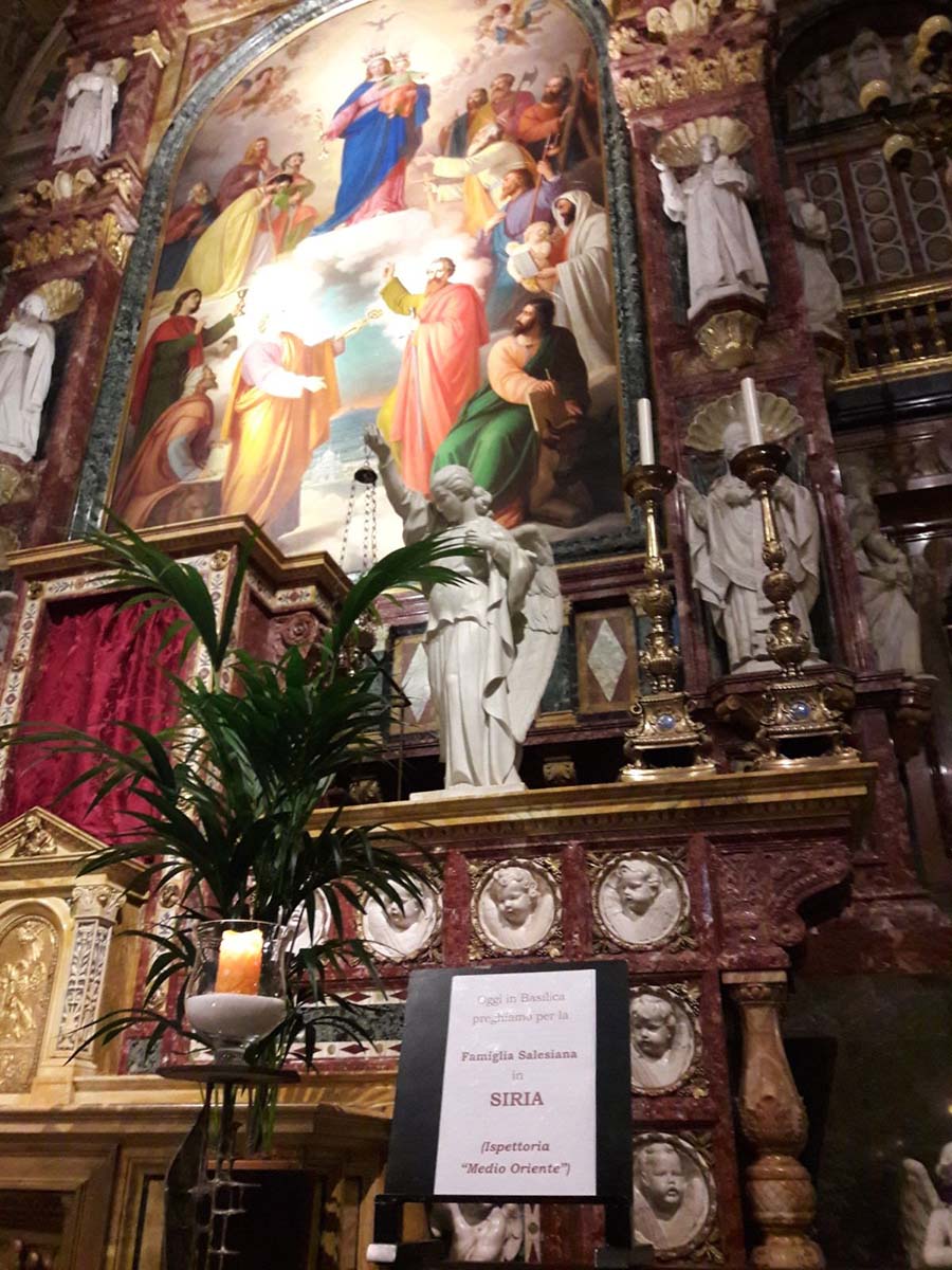 Turin, Italy - 23 February 2018 - In the day of prayer and fasting called by Holy Father Francis to implore the gift of peace, the faithful gathered today in the Basilica of Mary Help of Christians in Turin are invited to offer their prayers for the needs of the Salesian Family in Syria. This intention is to be expressed via a lit candle before the picture of Mary Help of Christians in the Basilica, a further stage of the path of thanksgiving and prayer inaugurated by the Rector Major, Fr Ángel Fernández Artime, in the context of the celebrations for the 150th anniversary of the consecration of the Basilica of Valdocco.