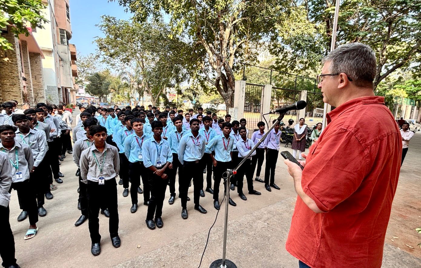 The visit commenced at the Salesian Institute of Graphic Arts (SIGA), a legendary institution that has stood as a beacon of technical excellence since 1952. Addressing an assembly of young printers and graphic designers, Fr. Ricardo offered a message that bridged the gap between 19th-century Turin and 21st-century Chennai. He noted that while the world is in constant transformation, the true difference lies in how we stand in relation to that change. Drawing from the life of Don Bosco, he offered the students a triad of virtues for their professional and spiritual journey: Curiosity, Sacrifice, and Humility. He urged the students to embrace these three pillars to ensure their technical skills serve a higher purpose. “Curiosity finds the suffering,” he noted, “Sacrifice builds the dream, and Humility recognizes that God is the true architect.” Following this stirring address, he moved through the SIGA press, interacting personally with the staff and observing the intricate dynamics of the printing technologies that have long defined the institute’s legacy.