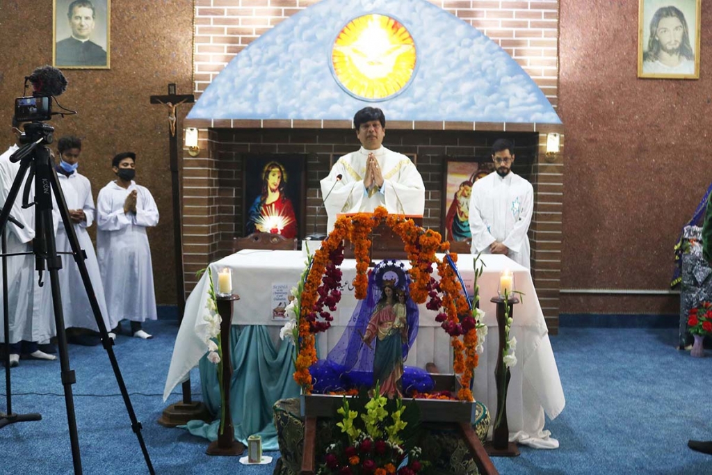 Lahore, Pakistán - mayo 2021 - La comunidad salesiana de Lahore celebró la Festividad de María Auxiliadora contando con la presencia de algunos miembros del personal y estudiantes de la obra, con el grupo de aspirantes salesianos y con los representantes de los grupos de estudiantes y de los Salesianos Cooperadores. Debido a la pandemia, la ceremonia se desarrolló de manera sencilla pero significativa, con el rezo del Rosario en procesión hasta el lugar donde se celebró la Eucaristía, seguido de un momento de recreación y ágape. Un hito significativo fue el anuncio oficial del nuevo Delegado Inspectorial para Pakistán para el período 2021-2024 designado por el Rector Mayor el 21 de abril: el padre Gabriel Cruz, misionero mexicano. En sus 15 años como sacerdote salesiano y 24 años de vida religiosa salesiana, fue anteriormente Profesor y Formador en varias Casas de Formación y Rector del postnoviciado interprovincial en México. Se ha especializado en Pedagogía, Filosofía, Teología de las Religiones y Misiología.