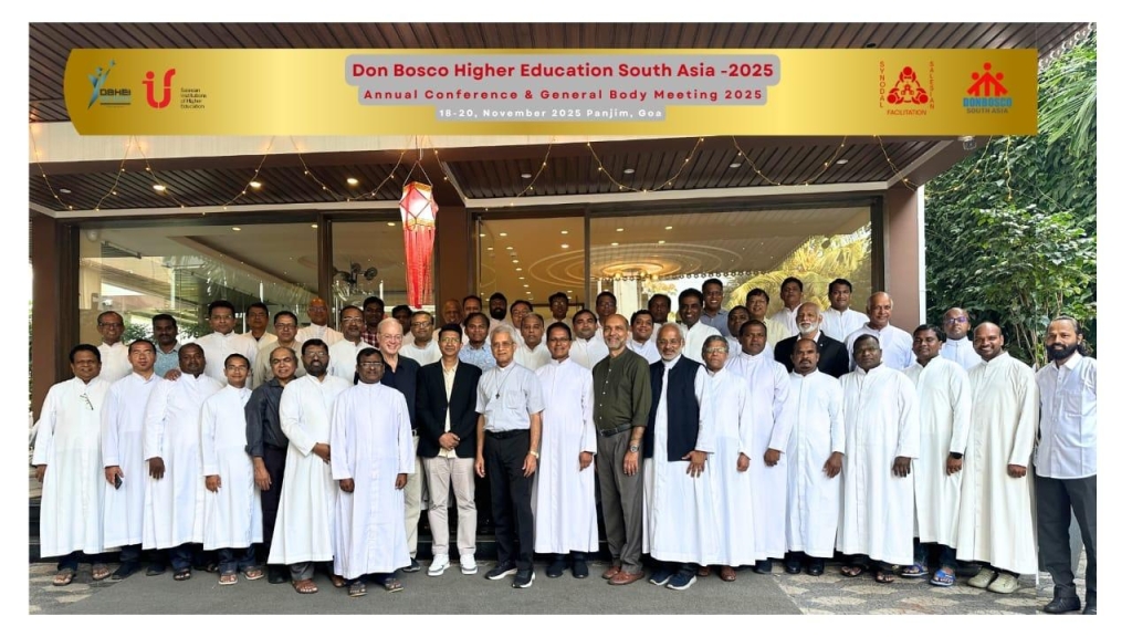 Goa, India – noviembre 2025 – “Don Bosco Higher Education South Asia” celebró su conferencia anual y la asamblea general en Panjim, Goa, del 18 al 20 noviembre 2025, centrándose en los “Modelos participativos de instrucción”. Los líderes de las instituciones salesianas de India y Sri Lanka exploraron enfoques colaborativos para la excelencia académica y el crecimiento de los campus. Arraigada en el sistema preventivo salesiano y en la visión sinodal de la Iglesia, la conferencia puso de relieve el liderazgo compartido, la corresponsabilidad y el compromiso de los jóvenes. Los participantes discutieron el fortalecimiento de los procesos de enseñanza-aprendizaje, de los ecosistemas de investigación y de la sensibilización de la comunidad, integrando al mismo tiempo los valores basados en la fe en la gestión institucional. El padre George Thadathil, coordinador general de las Instituciones Salesianas de Educación Superior (IUS), guio las sesiones, apoyado por los facilitadores expertos Glenn Shive, Mark Pixley, Shirish Sebastian y Tomy C. Kallarakal. Los talleres alentaron la renovación de las prácticas institucionales y de los modelos de aprendizaje participativo. La conferencia reafirmó el compromiso de “Don Bosco Higher Education” de responsabilizar a los jóvenes y de crear entornos de aprendizaje transformadores en el Asia del Sur.