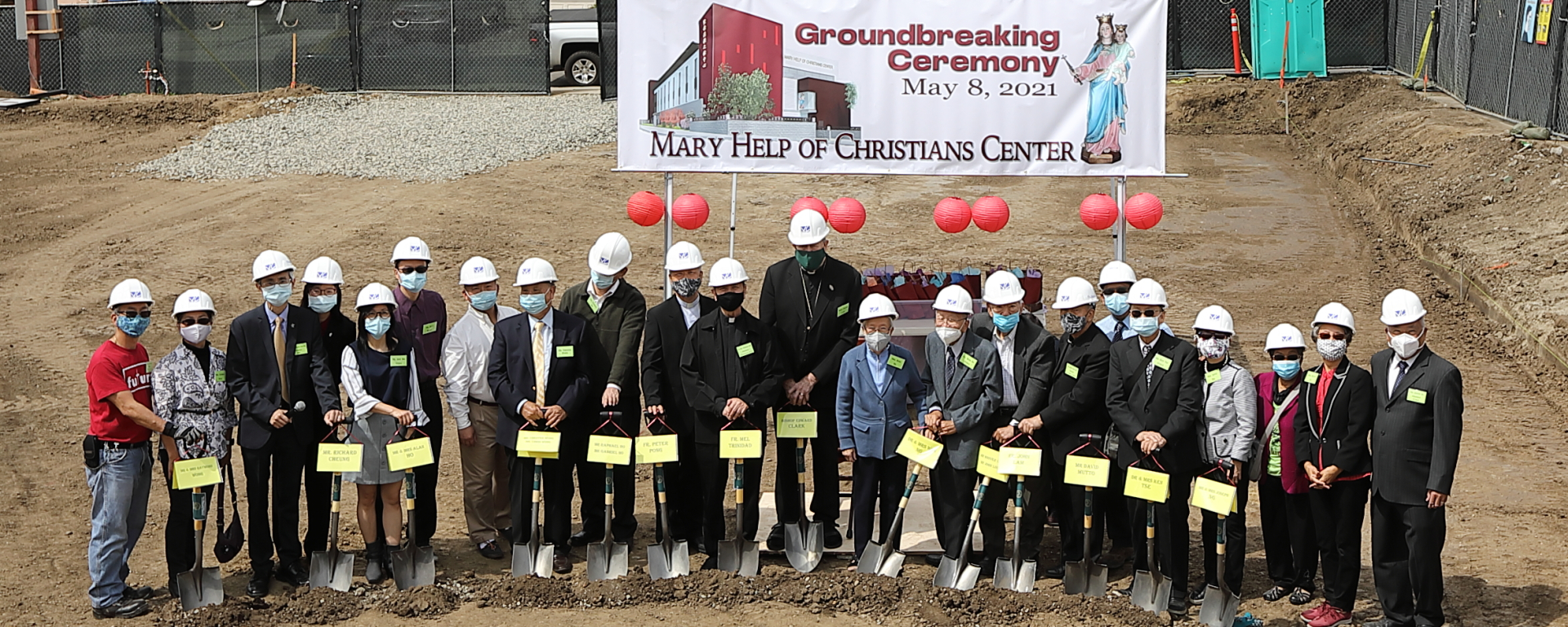 Después que Mons. Clark bendijo el sitio, varias de las personalidades que asistieron a la ceremonia, cada una con una pala, dieron las primeras paladas simbólicas en el suelo, representando el inicio de la obra.