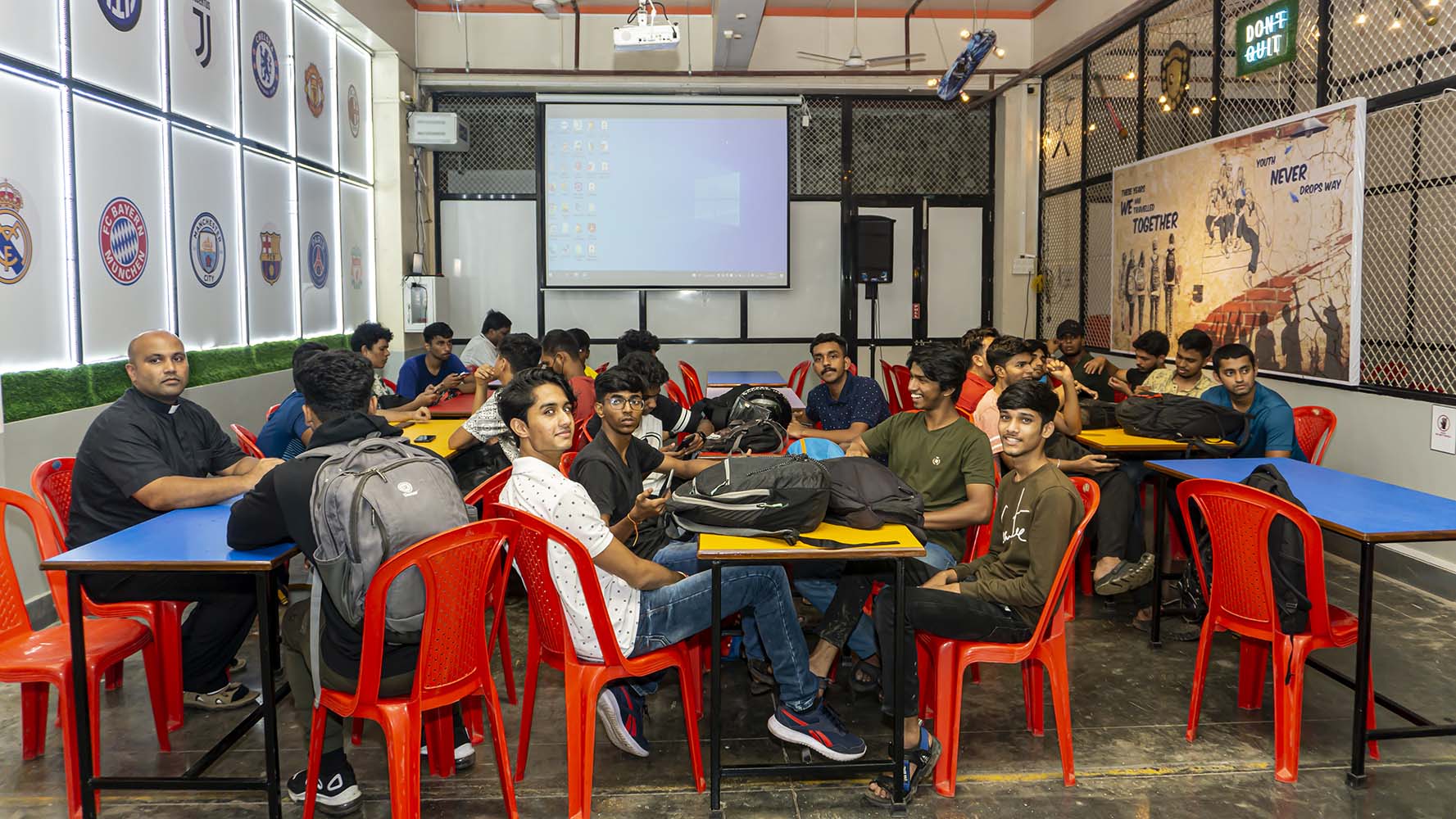El DBCL es un instituto de formación superior para los salesianos de la Inspectoría de Mumbai, donde ingresan cada día cerca de 2.500 estudiantes que desean hacer carrera. En este mundo competitivo, los estudiantes a menudo se sienten estresados y necesitan un espacio cómodo para recargar su energía y poder seguir esforzándose para obtener los mejores resultados. Los salesianos del DBCL, por lo tanto, decidieron dotarse de un espacio dedicado a los estudiantes, donde pudieran sentirse bien, pasando el tiempo juntos. Por lo tanto, el nuevo comedor se diseñó para ofrecer un ambiente semejante al de un bar.