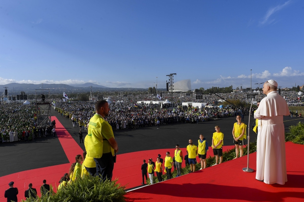 Antes de realizar una última vuelta en papamóvil para saludar a la mayor cantidad posible de jóvenes, el Santo Padre dedica un pensamiento a los muchos jóvenes que no pudieron participar: “En muchos países donde era imposible salir, hay lugares donde los jóvenes no han podido venir por razones que conocemos”.