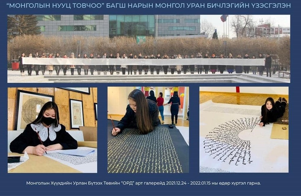 Lavorando in una scuola, non ho mai smesso di esercitarmi per migliorare le capacità e la tecnica della Scrittura Mongola. È il nostro tesoro mongolo, che deve essere conservato.