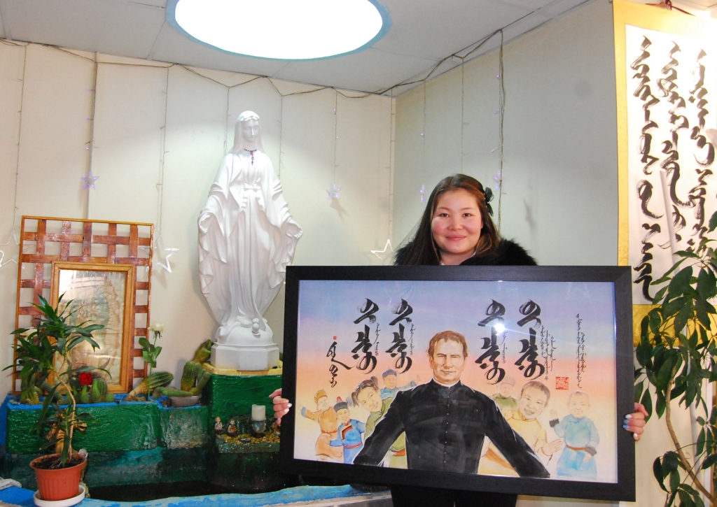 Con profonda gratitudine ai Salesiani, che hanno permesso e sponsorizzato i miei studi, ho organizzato una mostra sulla scrittura tradizionale mongola nell’Istituto Tecnico “Don Bosco”. Mi ha richiesto un intenso lavoro per tre mesi, e ho riportato alcuni passi celebri dalle Lettere di San Paolo, come l’Inno alla Carità, o affermazioni di Don Bosco, come all’art. 14 delle Costituzioni Salesiane (“lo per voi studio, per voi lavoro, per voi vivo, per voi sono disposto anche a dare la vita”...) Insomma, delle frasi che ho voluto usare per trasmettere alcuni messaggi a chi ha visitato la mia mostra, soprattutto agli studenti della scuola. Non sono cattolica, ma riconosco che queste parole sono messaggi molto potenti che la gente di oggi ha bisogno di conoscere.