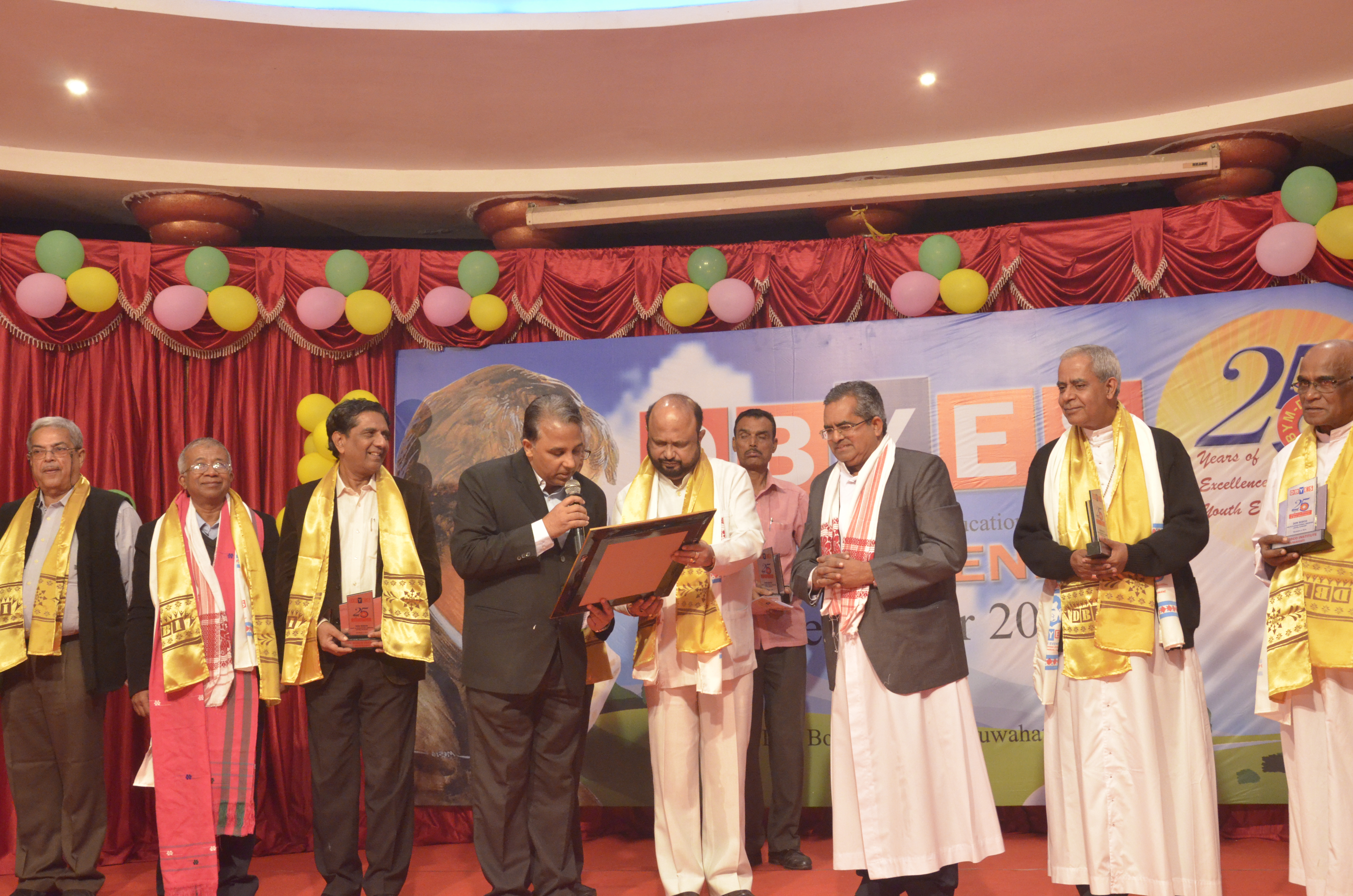 Guwahati, India – dicembre 2016 – Il 5 dicembre il “Don Bosco Youth Mission and Educational Services” (DBYES) ha celebrato i 25 anni di servizio all’educazione e allo sviluppo dei giovani. Durante i festeggiamenti, a cui hanno preso parte autorità civili e religiose, l’ex Primo Ministro dello Stato di Assam, on. Prafulla Kumar Mahanta, ha consegnato un riconoscimento a sr Elizabeth George, Ispettrice FMA, e don Thomas Vattathara, Ispettore SDB, di Guwahati per il servizio sociale svolto dal “DBYES”.
