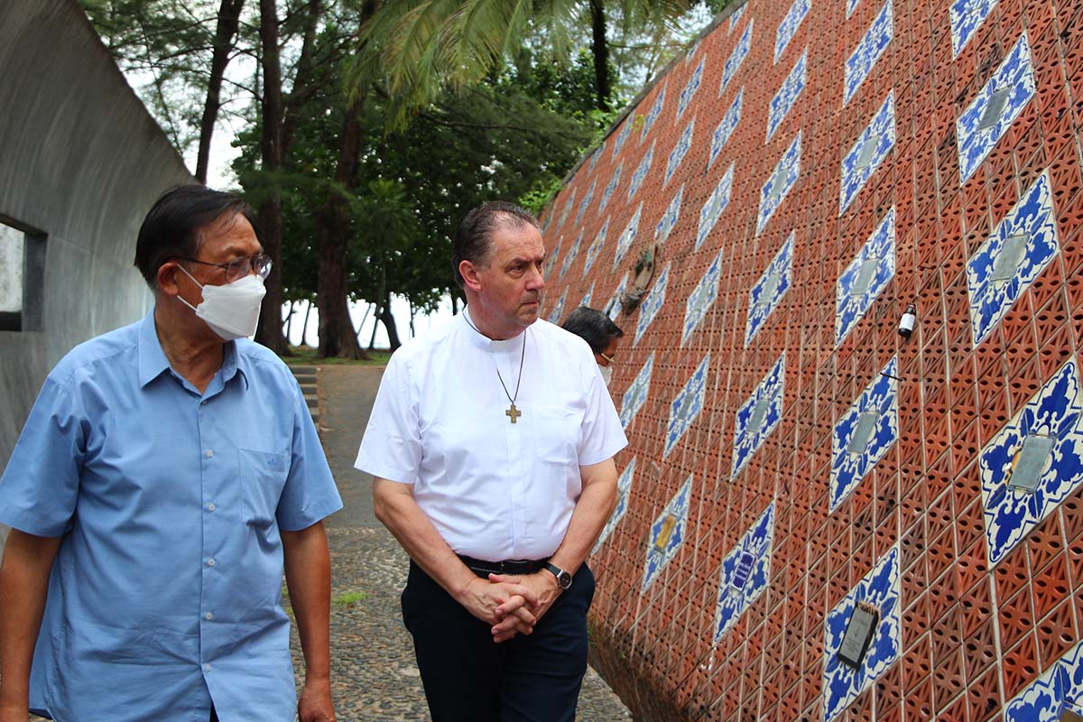 Khao Lak, Thailandia – maggio 2022 – La visita alla "Nave di sorveglianza n. 813" e al memoriale dello tsunami di Ban Nam Khem da parte del Rettor Maggiore, Don Ángel Fernández Artime, del Consigliere Regionale dell’Asia Est-Oceania, don Joseph Phuoc, e dell’Ispettore della Thailandia, don John Bosco Dheparat Pitisant, ha riacceso i ricordi delle peggiori perdite subite dalla Thailandia a causa del disastro dello tsunami del 26 dicembre 2004. La visita al memoriale dello tsunami faceva parte del programma della Visita del Rettor Maggiore alle missioni salesiane nel sud della Thailandia. Si trova in un villaggio lungo la costa Andamana della Thailandia, nel distretto di Khao Lak della provincia di Phangnga. La "Nave di sorveglianza n. 813" apparteneva al dipartimento di polizia e aveva lo scopo di fornire sicurezza alla popolazione, ed era ormeggiata in mare. Quando le potenti onde del maremoto hanno colpito le coste, la nave, del peso di 60 tonnellate, è stata portata a circa due chilometri dalla costa. Oggi la nave rimane come monumento in quel luogo e ricorda come anche una nave di 60 tonnellate non sia riuscita a resistere alla ferocia della natura. Il Rettor Maggiore ha anche visitato il memoriale dello tsunami a Ban Nam Khem, che riporta i nomi e i volti di alcuni dei 3.500 thailandesi e stranieri che hanno perso la vita durante questo disastro. Ha visitato anche il cimitero dei senza nome di Ban Maruan, dove sono conservati i resti mortali di quasi 400 vittime non identificate dello tsunami. È molto significativo notare che questo disastro ha spinto i Salesiani della Thailandia a fondare la Casa Don Bosco a Bangsak, per aiutare i bambini poveri e orfani.