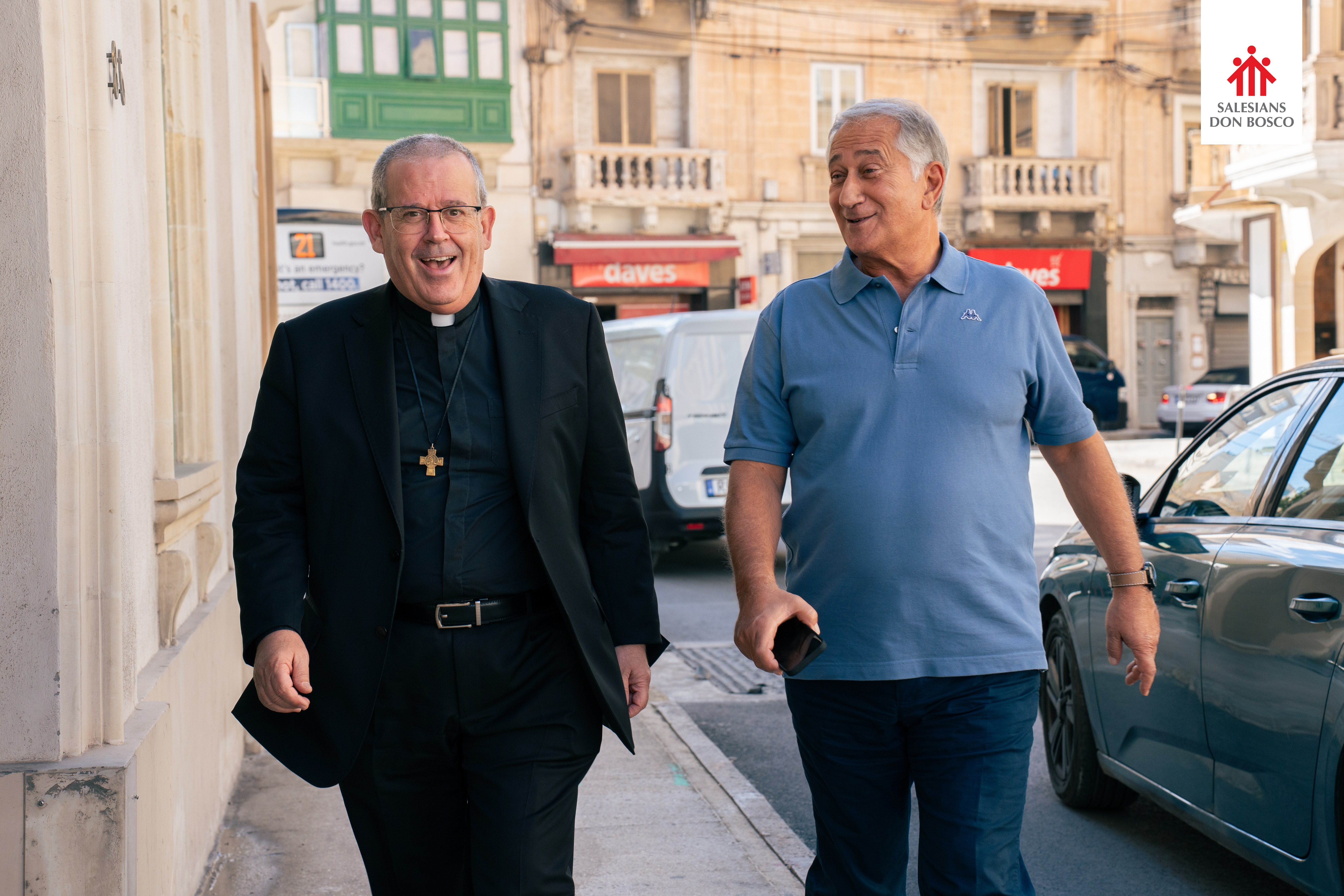 Arrivato ieri, don Fabio è stato accolto a braccia aperte da una folla di salesiani, vecchi amici, ex colleghi, ex alunni e giovani. Con il suo caratteristico calore e il suo sorriso familiare, ha abbracciato e chiamato per nome quasi tutti coloro che gli si sono avvicinati: confratelli, familiari e rappresentanti degli studenti delle due scuole salesiane di Malta: il Savio College e la St Patrick's School.