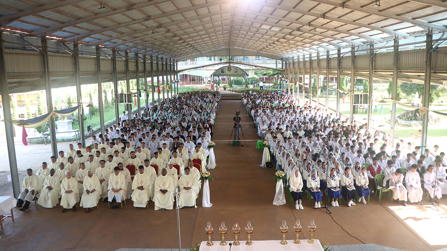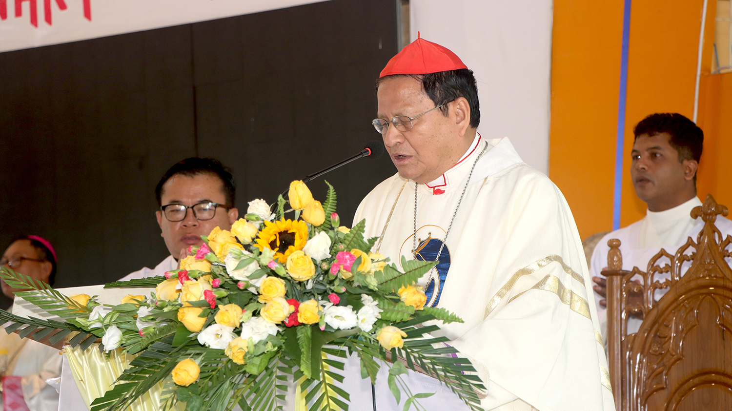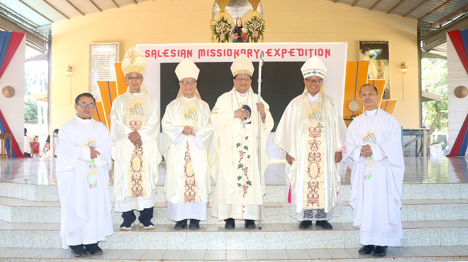 La Messa è stata presieduta dal Cardinale Charles Maung Bo, SDB, Arcivescovo di Yangon, affiancato da Mons. Marco Tin Win, Arcivescovo di Mandalay, da Mons. Lucas Jeimphaung Dau Ze, SDB, Vescovo di Lashio, e da Mons. Philip Lasap Za Hawng, Vescovo Emerito di Lashio. Hanno concelebrato inoltre una cinquantina di sacerdoti, tra diocesani, Salesiani, Francescani, Redentoristi, Salettini e altri religiosi. La sala del santuario era gremita, inoltre, di suore di diverse congregazioni, salesiani coadiutori, parrocchiani di Anisakan, membri dell’Associazione di Maria Ausiliatrice, amici e sostenitori. La Messa è stata poi allietata dal coro, diretto da don Mark Cin Pi e dagli studenti di Filosofia, con il sostegno di suor Mary Myint, FMA.
