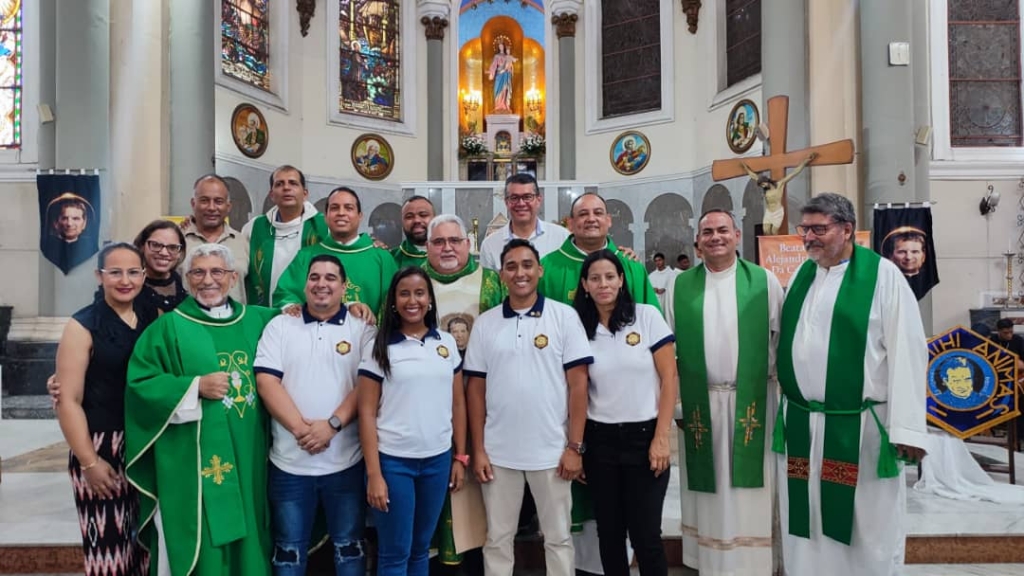 Caracas, Wenezuela – październik 2024 - W niedzielę 13 października, we wspomnienie bł. Alexandriny Da Costa, Stowarzyszenie Salezjanów Współpracowników (SSW) z Ośrodka „Don Juan Vernet”, działającego przy parafii Maryi Wspomożycielki w Sarria, niedaleko Caracas, uczestniczyło w szczególnym wydarzeniu. Podczas Eucharystii, której przewodniczył ks. Rafael Montenegro, przełożony salezjańskiej inspektorii Wenezueli (VEN), czterech nowych członków złożyło swoje przyrzeczenia: Saraí Avendaño, Gregson Padilla, Marela Palomino i Leonardo Páez. Eucharystię koncelebrowali: ks. Yhoan Castro, delegat ds. Rodziny Salezjańskiej, ks. David Marín, delegat ds. Salezjanów Współpracowników i salezjanie z Sarrii. W homilii ks. Montenegro podkreślił znaczenie tego powołania: „Chodzi o naśladowanie Jezusa Chrystusa, wychodząc od charyzmatu Księdza Bosko, w Stowarzyszeniu, które ma w Kościele szczególną misję do spełnienia. Dzisiaj decydujecie się pójść za Jezusem Chrystusem jako Salezjanie Współpracownicy: jest to droga, którą Bóg wam zaproponował i którą przyjmujecie”. Uroczystość, w której uczestniczyli liczni członkowie różnych grup Rodziny Salezjańskiej, zakończyła się odnowieniem przyrzeczeń wszystkich obecnych członków SSW.