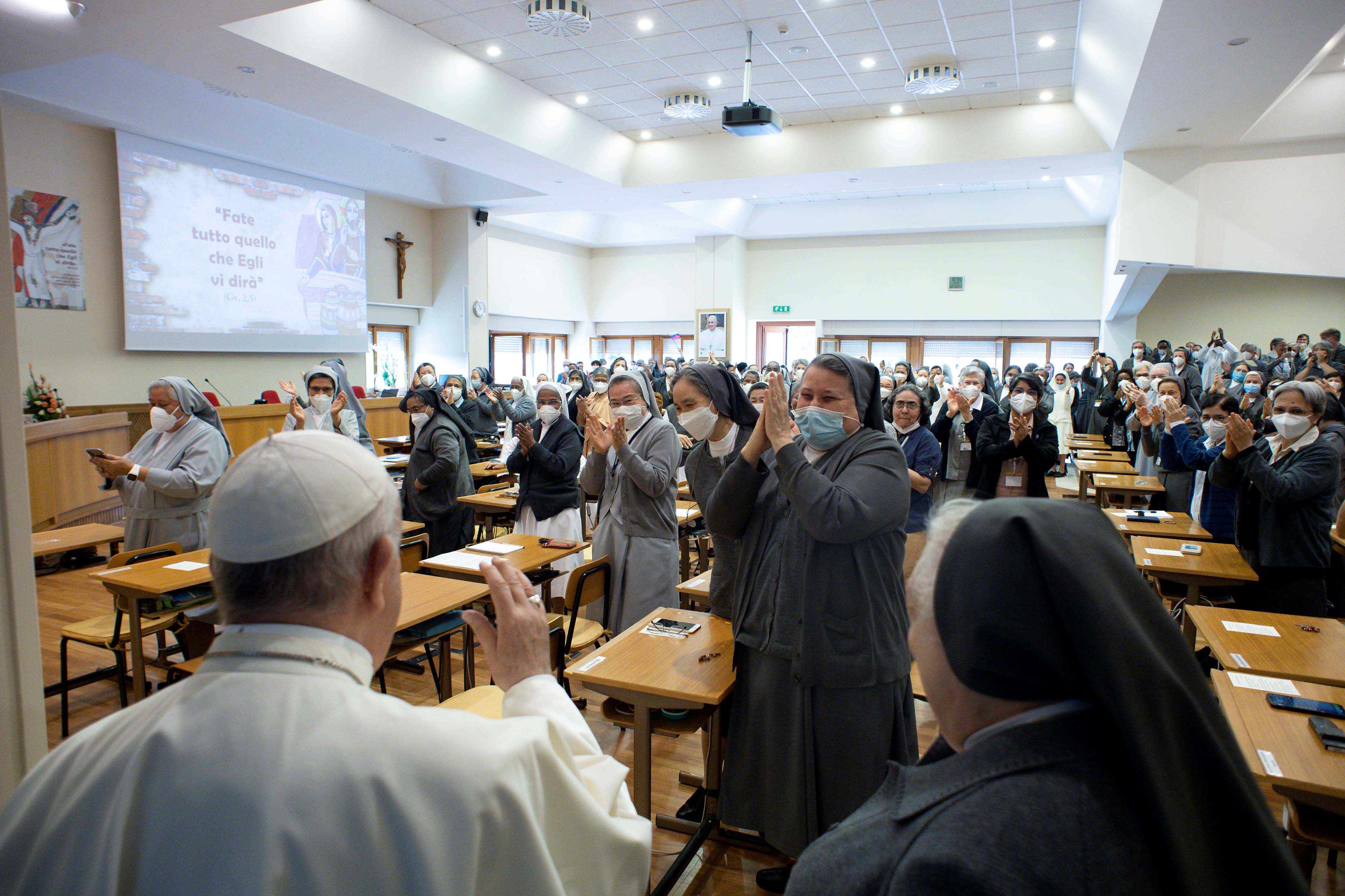 Sucessivamente, o Papa Francisco, com seu estilo simples e familiar, dirigiu a Sua palavra às Capitulares: apreciou a centralidade de Maria na reflexão capitular e convidou a imitá-La: Ela “nada retém para Si, mas tudo endereça a Jesus”.
