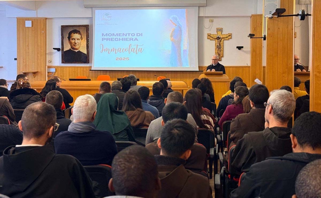Messina, Italia – dicembre 2025 – Il 4 dicembre, la comunità accademica dell’Istituto Teologico “San Tommaso” e della Scuola Superiore di Specializzazione in Bioetica e Sessuologia di Messina si è riunita per celebrare la solennità dell’Immacolata Concezione, festa centrale per la Chiesa e per la Famiglia Salesiana, che ne riconosce il valore fondativo del proprio carisma. Convocata dal direttore dell’Istituto, don Giovanni Russo, SDB, la comunità ha vissuto un momento di preghiera e riflessione, ricordando l’incontro tra Don Bosco e Bartolomeo Garelli l’8 dicembre 1841. Don Russo ha sottolineato il valore simbolico della semplice “Ave Maria” recitata allora, gesto che ha segnato l’inizio di un percorso di accoglienza, educazione e santità che continua a ispirare la missione salesiana. Il Direttore della comunità salesiana del “San Tommaso”, don Giuseppe Cassaro, ha ricordato come Maria sia stata guida e maestra nella vita e nell’opera educativa di Don Bosco, richiamando anche il celebre sogno dei nove anni. L’incontro, breve ma intenso, ha permesso alla comunità dell’ITST di riscoprire la freschezza e l’attualità del carisma salesiano, radicato nella fiducia in Maria Immacolata e nell’avventura iniziata oltre 180 anni fa in una sacrestia torinese.