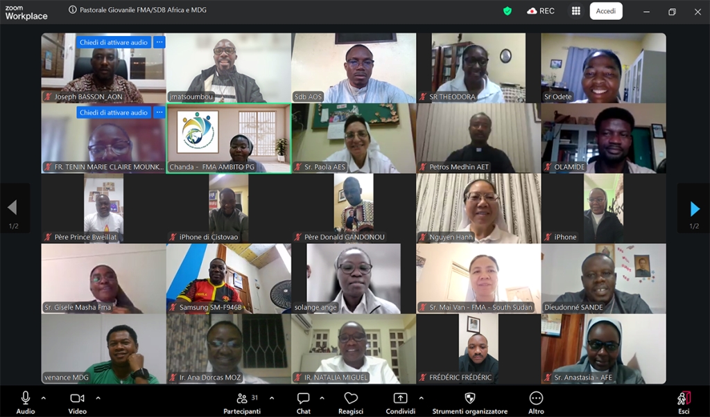 Tutti i presenti, Salesiani di Don Bosco e le Figlie di Maria Ausiliatrice, Delegati ispettoriali di Pastorale Giovanile, hanno discusso sulle linee guida da mettere in evidenza congiuntamente per rendere ancora più dinamico e visibile il carisma nel contesto africano. Sotto il coordinamento di don Jerry Matsoumbou, SDB, referente per le due Regioni salesiane in Africa e Madagascar, e di suor Constance Chanda Nsofwa, referente FMA per l’Africa e Madagascar, i delegati hanno discusso su due temi principali: